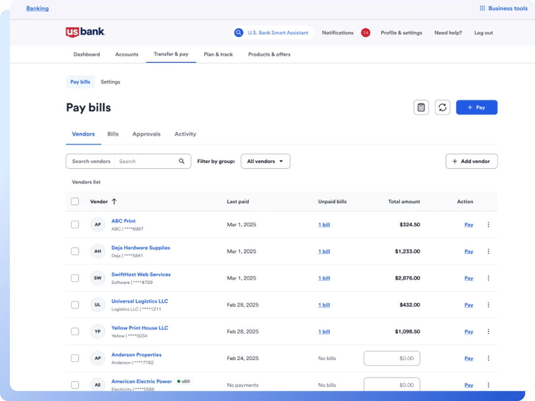 Simplify payments with bill pay for business.