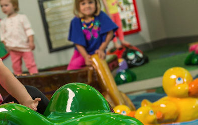 Discover the benefits of play! Kids love getting up close and personal with these bright-colored park-themed elements. The soft-foam material makes them perfect for crawling in and on, with plenty of tunnels to explore and slide through. (Translation: Kids run off some energy in a safe, fun place.) Note: For kids 42″ and under. Location: Food Court.